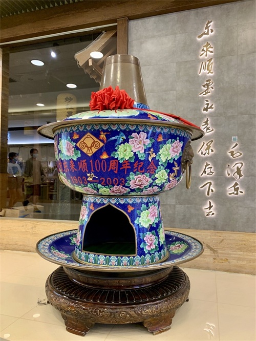 东来顺(环球城市大道店)外置大火锅抢眼/记者拍摄