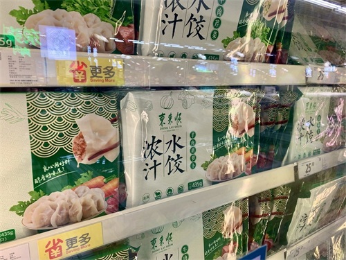 在传统餐饮门店堂食的基础上,东来顺集团还着力开发东来顺清真食品市场,疫情期间,满足了全国消费者的就餐需求。走进家乐福(国展店)卖场,东来顺专区的速冻牛羊肉片、肉串,火锅蘸料,还有水饺等清真食品,种类丰富,货品充足。东来顺集团副总经理董锴介绍,东来顺品牌100多种清真产品线下零售渠道,覆盖全国24个省(自治区、直辖市),进驻5家10亿级以上商超连锁体系,销售网点达到7000余家。