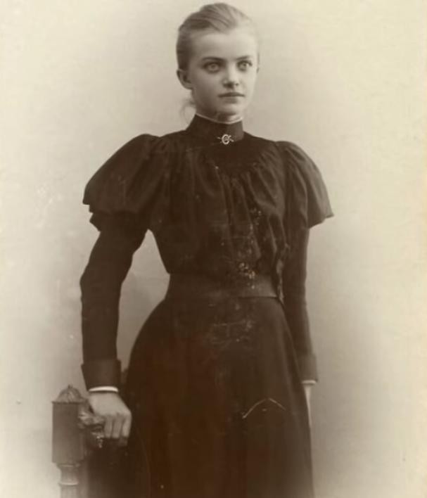 03 这位女性有着一张混血般精致的面容,她面色沉静,身穿一身深色大貂。