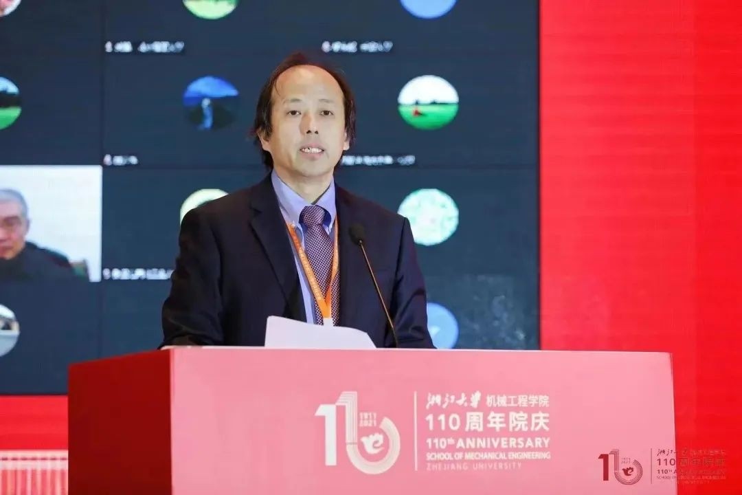 华中科技大学机械科学与工程学院院长尹周平教授作为高校院系代表,向浙江大学机械工程学院110周年表达了深深祝贺。他表示,浙大机械在一百一十年的办学历程中,砥砺前行、成绩斐然,在立德树人、科学研究等方面成果显著,已成为中国高校工程技术学科高水平科研的标杆,为我国机械学科发展提供了模板典范。希望未来能进一步加强华科大与浙大机械学科的交流合作,祝愿浙大机械发展越来越好,为国家科技发展和人才培养做出新的更大贡献。