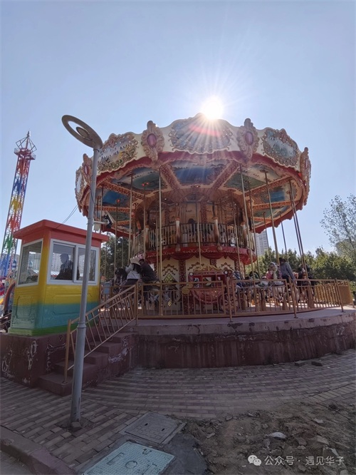 我们还在大型的旋转木马前看了好久。妹妹甚至还给一圈一圈的数。儿子小时候只在八一公园坐过这个游乐设施。