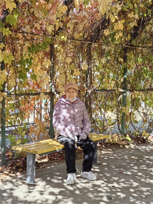 我们流连于此拍照,阳光斑驳的透过藤蔓映照在老妈的脸上。微风拂过老妈的面庞,那是一种淡然自若的神情。