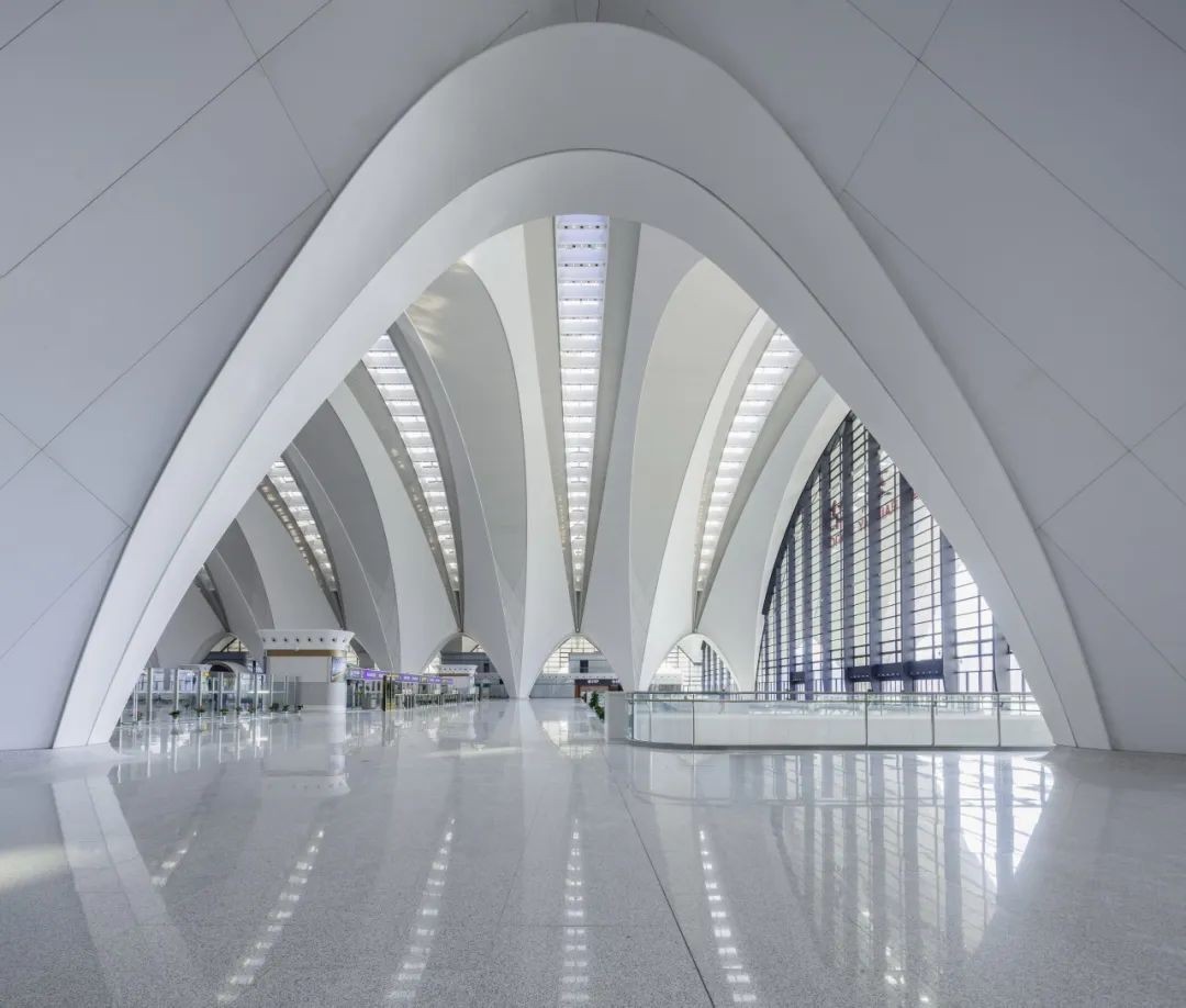 南昌东站应该是几座火车站里面颜值最高的火车站,设计方案为“霞鹜腾飞”,位于南昌市青山湖区罗家镇,2022年正式开工建设,总建筑面积22.35万平方米,站场为8台16线,是昌景黄高铁的起始站、未来接入京九高铁,2023年12月27日通车运营。目前地铁还在修建中,这里目前通达的车次主要是前往黄山方向,后期等昌九高铁开通后,往九江、赣州方向的高铁将大部分经过这里,联络线建好后,将有部分上海及长沙方向的高铁停靠,停靠车次将翻倍级的增加。当前,周边还是比较荒凉的,交通不是很方便,乘车人数不是很多,毕竟新站嘛,有个过程。