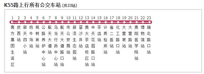 3、也可在东站附近皮西站乘坐K55路(南方集团生活区———瑞金北路)到贵阳老城区