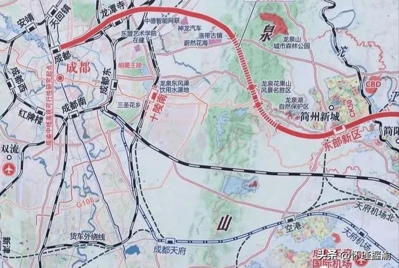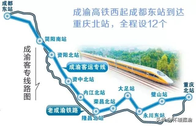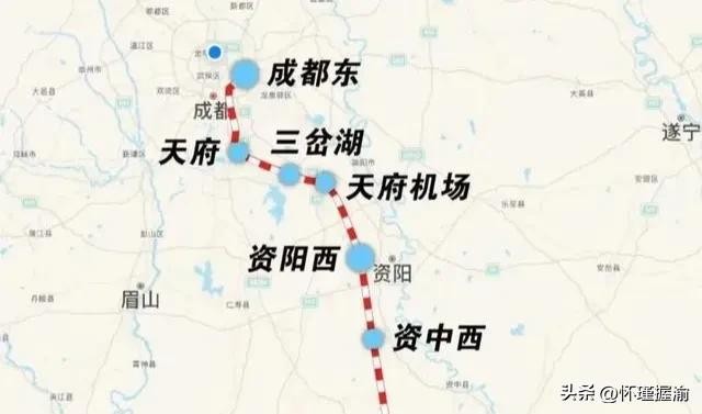成渝中线高铁由成都站至重庆北站,正线全长292公里,设计时速350公里,成都境内共设站2座。