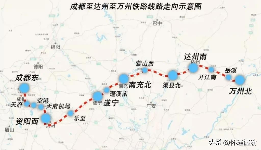 成达万高铁由天府站至万州北站,正线全长477公里,设计时速350公里,成都境内共设站3座,均为成宜高铁的既有站(天府、三岔湖、天府机场)。