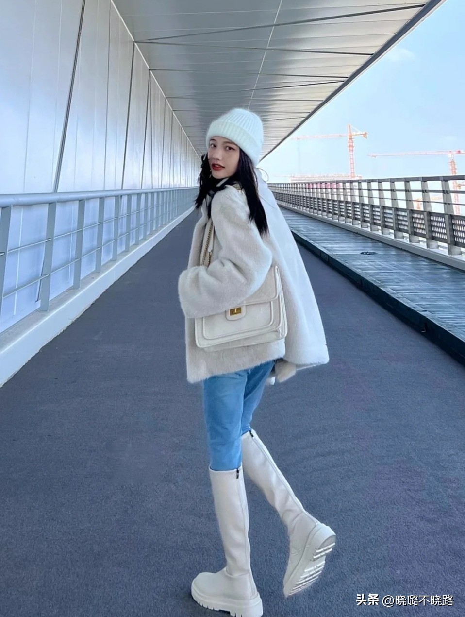 今年秋冬火了种穿法:“皮草外套+靴子”,时髦气质,回头率还高