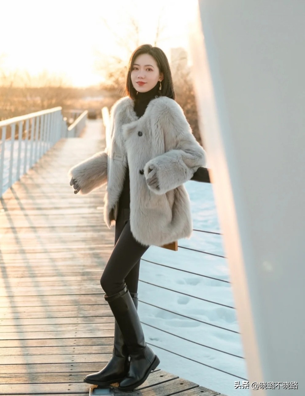 〖“皮草外套+靴子”组合,这样搭才显好身材与高贵感〗