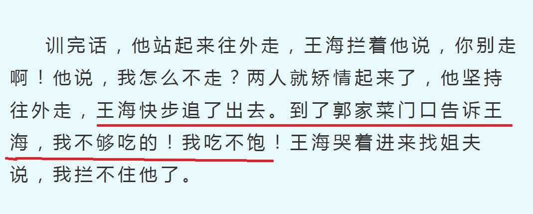王俣钦在书中说曹云金对王海喊“我不够吃的,我吃不饱”,也可以侧面验证刘云天的话。