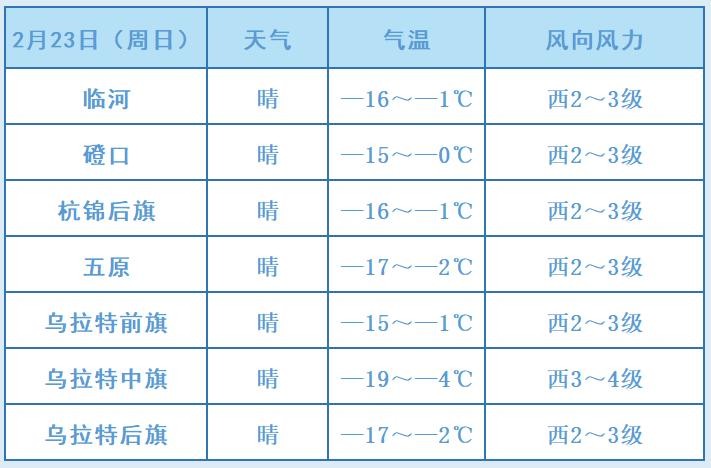 受冷空气影响,今天早上全市气温仍然较低,最低气温套区-18至-15℃、北部-20至-17℃;今天白天开始到28日,我市气温持续回升,其中24日风力稍大,阵风可达6-8级。