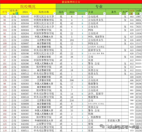 2024年中国人民公安大学、南京警官学院等七所在苏文科招生约863人,另中南财经政法大学招收公安专业(不能入警联考)文科1人。上述招生,均在本科提前批。