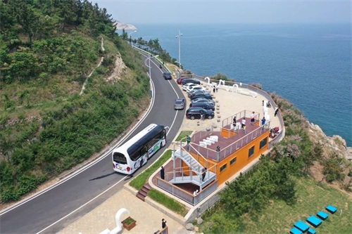 环海路的观光巴士,视野非常棒!大学生可以租辆网红小车车出行,也很方便。