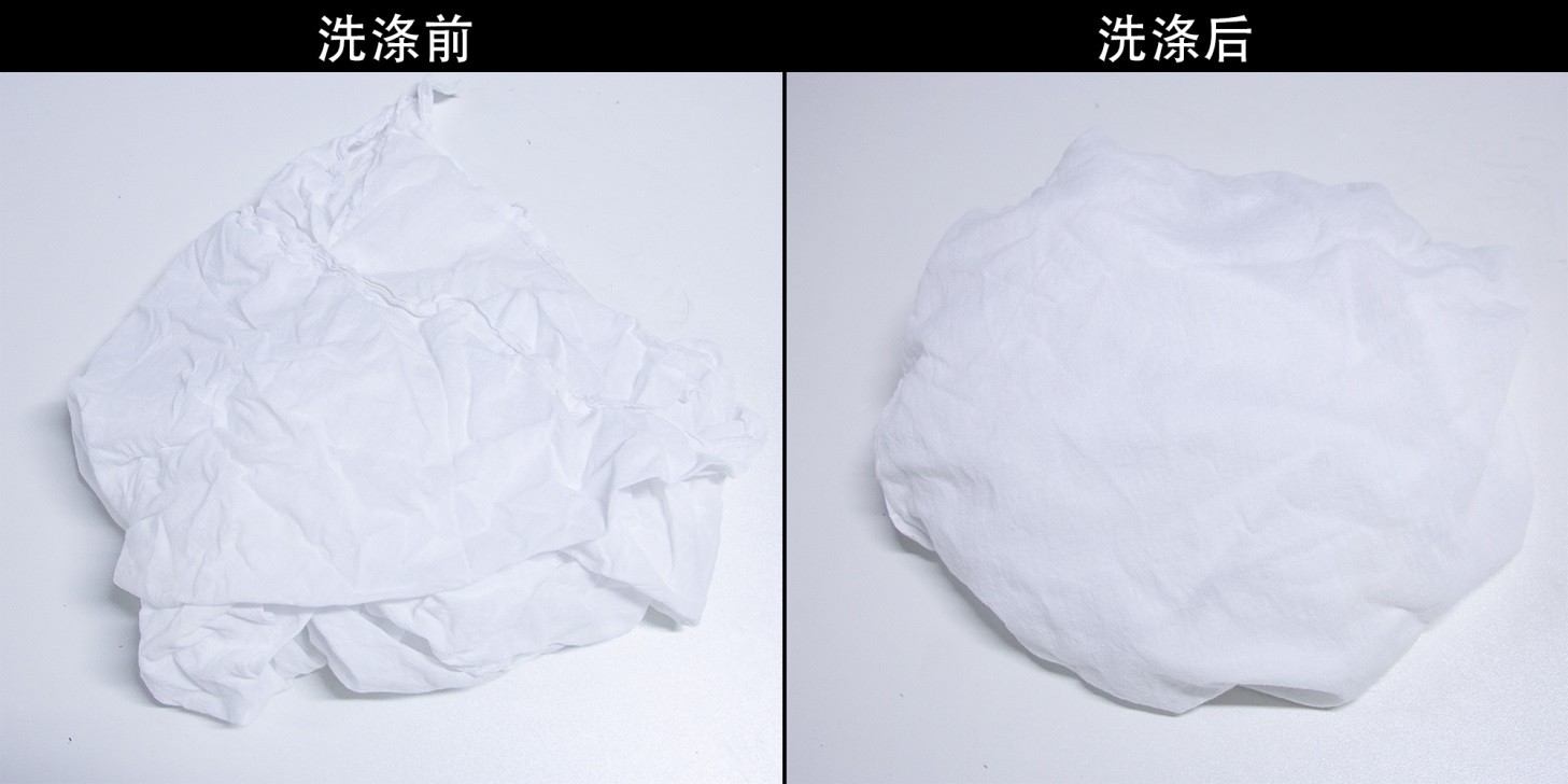 在简单的对比测试中可以看到,经过空气洗后的白色窗帘褶皱少了很多,并且变得蓬松不少。
