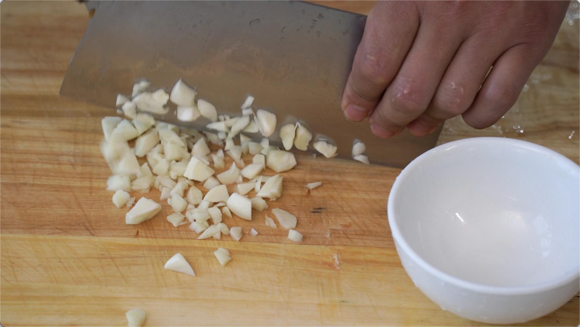 蒜蓉拍一下,这个可以稍微大一些的蒜口感好吃!