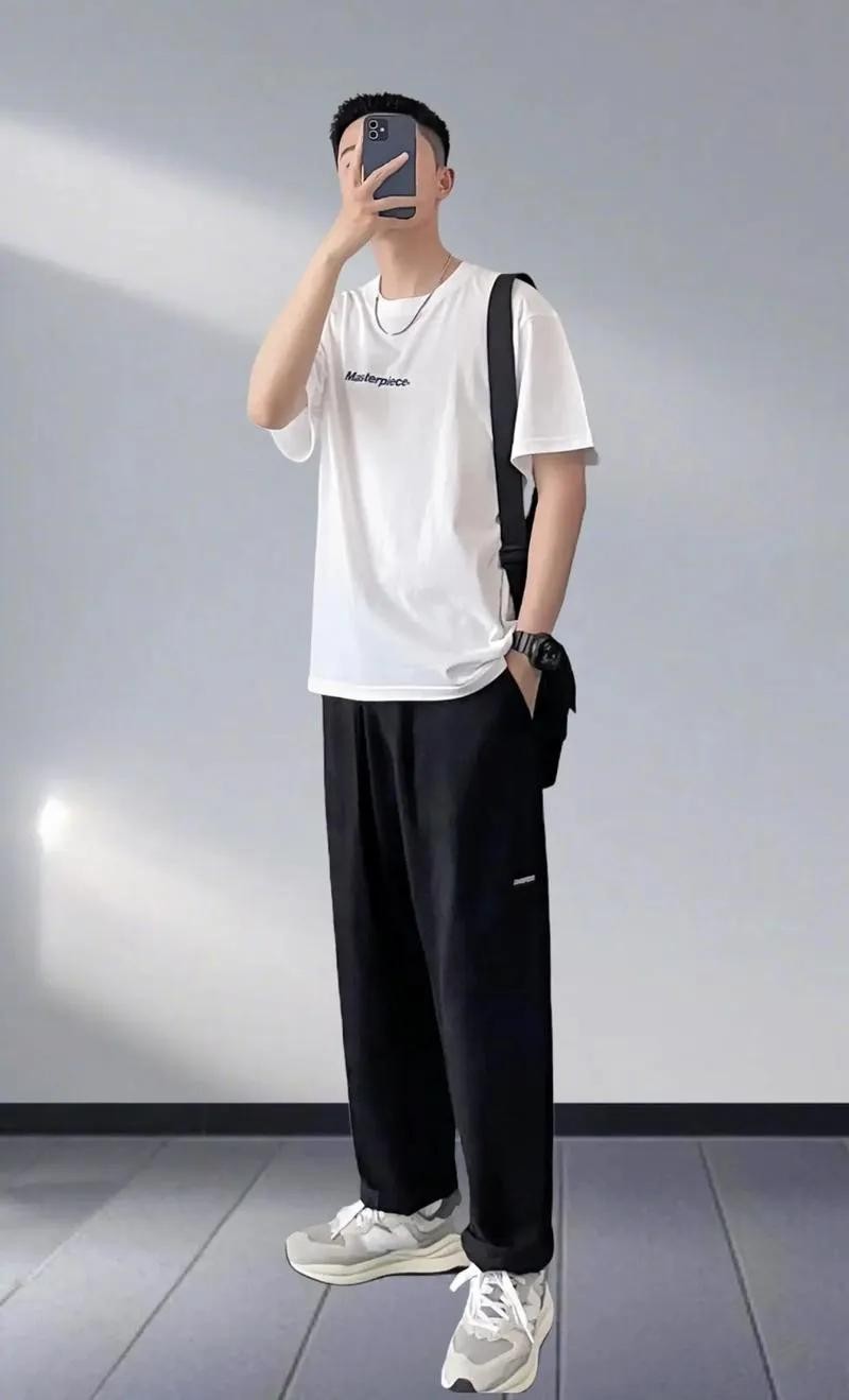 配饰方面,不用太复杂。可以戴一块简约的手表,既能看时间,又能提升整体的气质。喜欢项链的话,戴一条细细的简约项链就行,别戴那种特别夸张的,不然会抢了整体穿搭的风头。还有背包,选简约款式的,像黑色或者深色的斜挎包,能装东西又好看,还能解放双手。