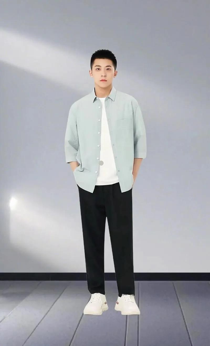 还有衬衫,夏天可以选薄一点的短袖衬衫。浅色的短袖衬衫,像浅蓝色、浅灰色,穿起来很清爽。要是觉得单穿衬衫太正式,里面搭个白色的打底T恤,把衬衫扣子解开几颗,就会休闲很多。