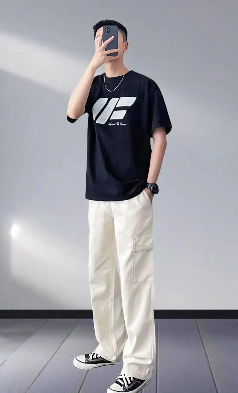 先说上衣。T恤是夏天不能少的单品。纯色T恤简单又大方,白色T恤特别百搭,配啥裤子都好看,而且给人一种干干净净的感觉。黑色T恤也不错,显瘦还耐脏。要是觉得纯色T恤有点单调,也可以选带简单图案的,像字母或者小印花的T恤,不过图案别太花,不然就会显得乱。