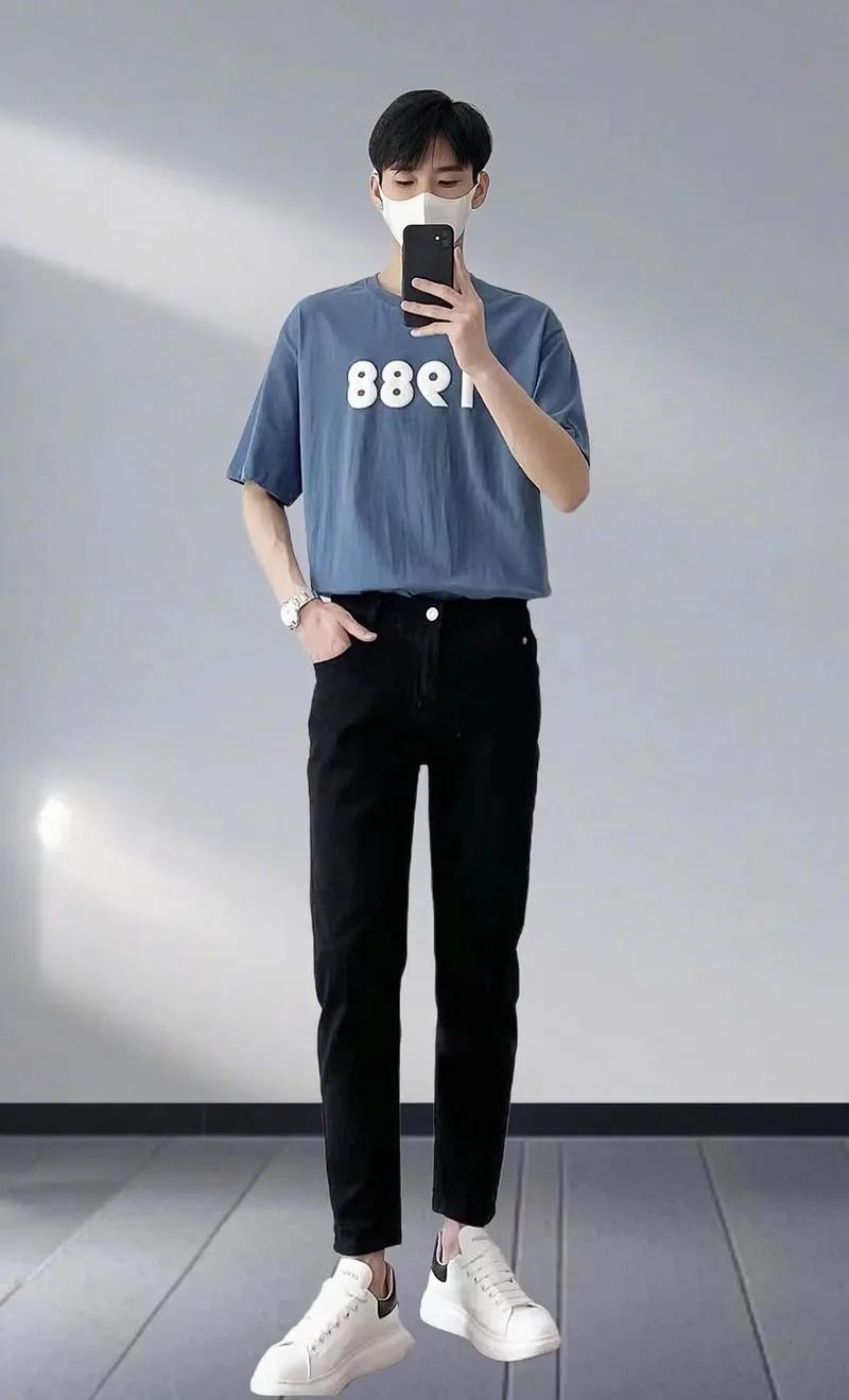再说说裤子。牛仔裤是经典款,浅蓝色的牛仔裤配白色T恤,就是很简单的好看。直筒版型的牛仔裤不挑腿型,大部分人都能穿。深色牛仔裤也不错,显得成熟稳重。