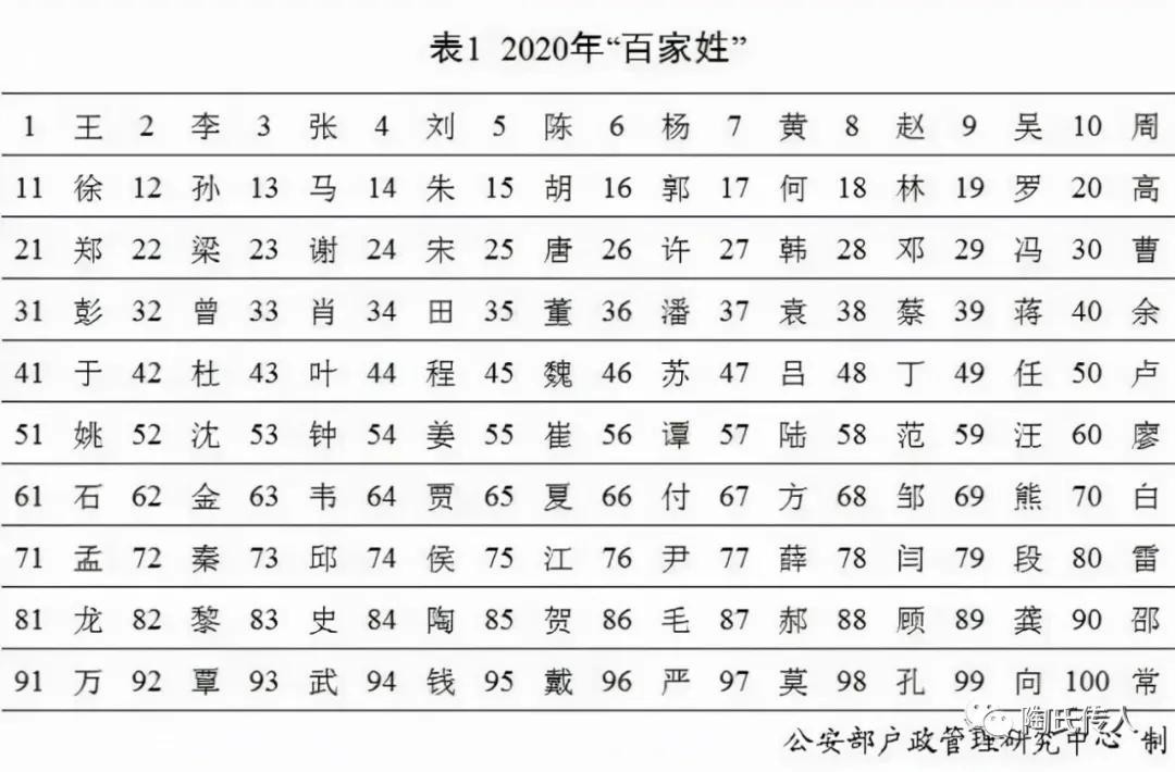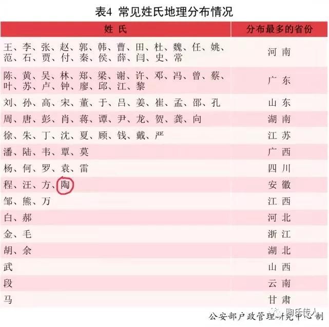 3.公安部发布“新百家姓”排行已呈常态化,陶姓宗亲请远离各种江湖传本!