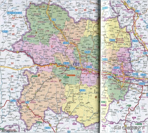 【地形】南、西、北三面环山,中部低平,东部敞开,以渭河为中轴,呈尖角开口槽形。地形分山、川、塬三类,山丘为主。