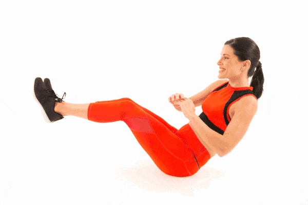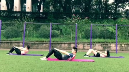 标准版俄罗斯转体:标准版和初级版的不同,其实很简单,就是需要把原来放在地面上的后脚跟提起来,交叠在半空中,靠腹部的力量收起腿部和上半身,其他动作是一样的。
