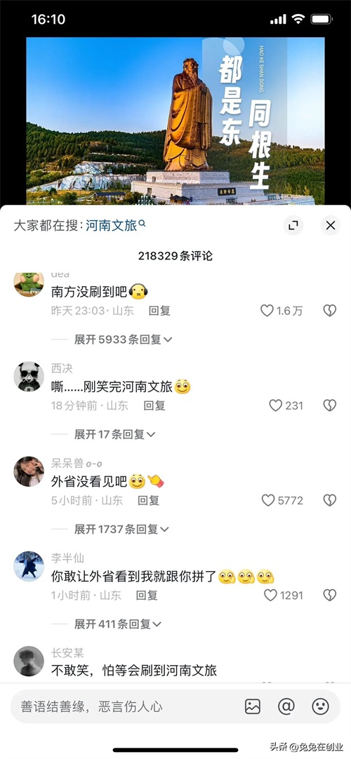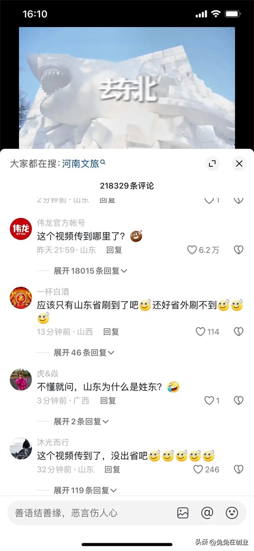 太搞笑了,哈尔滨火了之后,各个省的文旅都出来宣传自己的城市,河南文旅一天发十几天短视频宣传,山东人在哪嘲笑河南文旅,山东文旅视频一出,山东人都沉默了。