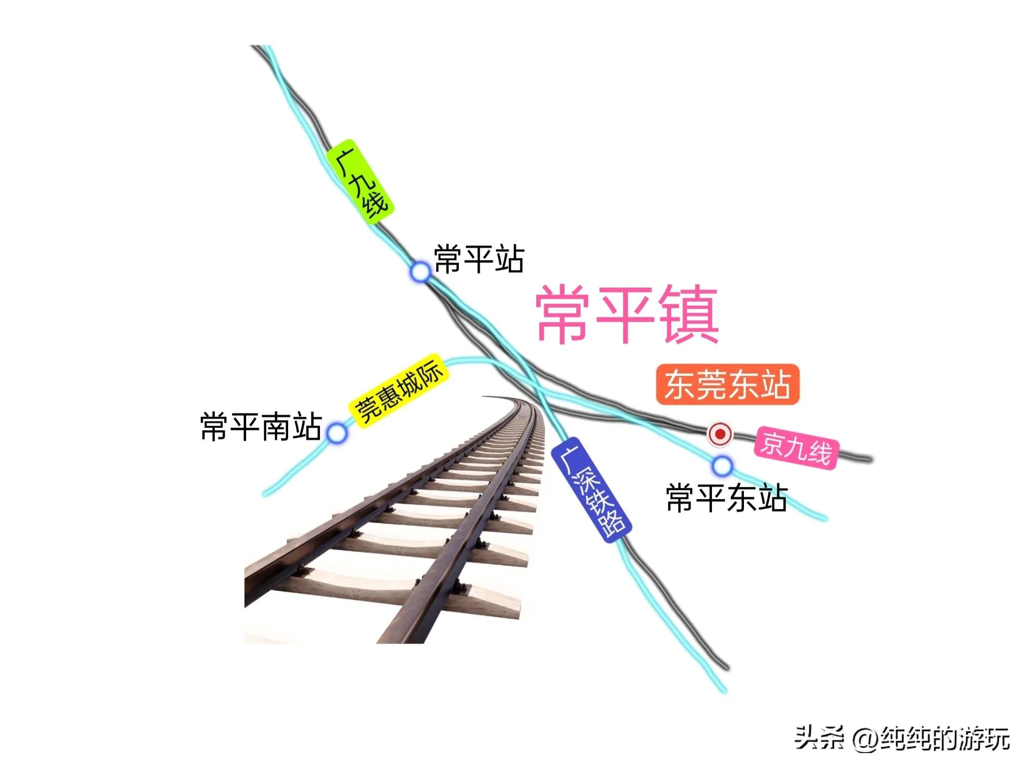 东莞东站:位于东莞市东部地区的常平镇,这里要注意的是东莞东站附近有四个不同的车站,除了东莞东站外还有常平站、常平东站和常平南站,而且相距都不是很远,其中常平东站位于东莞东站侧对面,常平站位于3公里外的口岸大道13号,东莞东站有2条线路途经,分别是京九铁路和广梅汕铁路,常平东站和常平南站是惠莞城际铁路(时速200公里)的中间站点,常平站有3条线路途经,即广九铁路、广深铁路和广梅汕铁路。