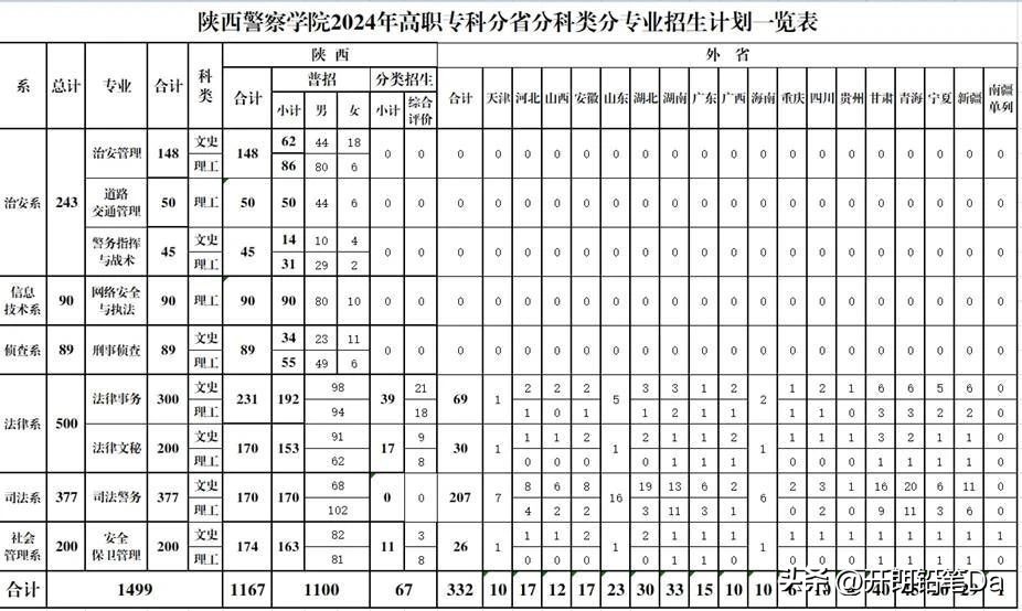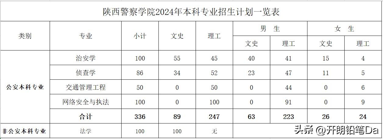 2024年陕西警察学院招生专业分为本科和专科,其中本科仅在陕西省内招生,而专科则面向全国18个省市区招生,下面是具体的招生计划: