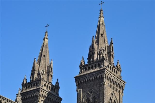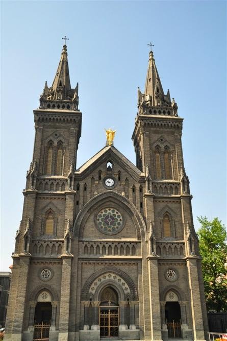 沈阳天主教堂,亦称沈阳南关教堂,最早叫沈阳耶稣圣心堂。位于沈阳市沈河区小南街南乐郊路40号,在沈阳五爱市场北侧。教堂原建于1878年(清光绪四年),是法国传教土方若望所建。1900年被义和团焚毁,现存建筑为1912年由南满教区法国苏悲理斯主教利用《辛丑条约》中的庚子赔款在原址上重建的。