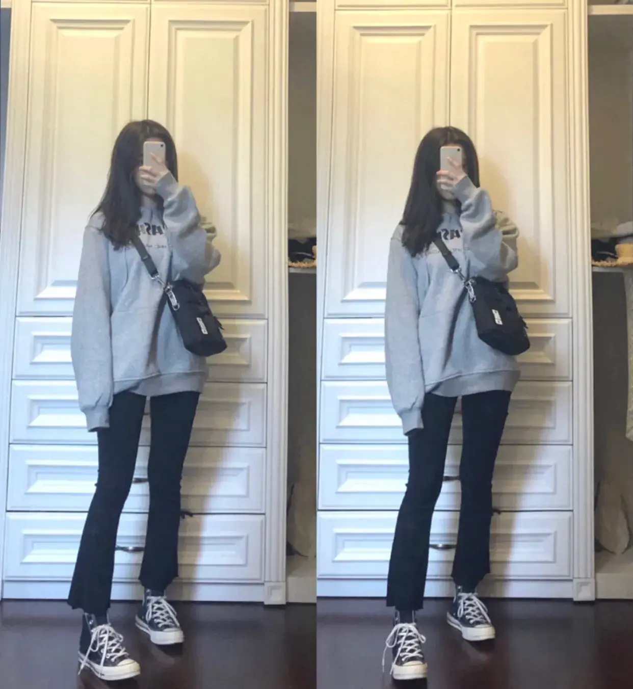 腿比较粗就选裤腿宽的,修饰腿型的效果依旧一绝。