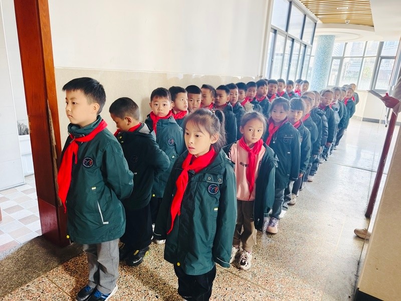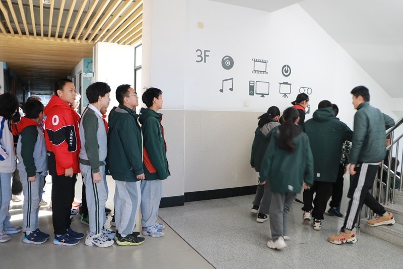 在整理完桌面,将凳子摆放得整整齐齐,确保电灯和屏幕都已关闭之后,同学们开始有序地列队走出教室。他们按照事先规定好的路线,一个接一个地走到自己的指定位置,每个人都占据一个位置,没有推搡,也没有吵闹,整个队伍安静而有序,展现了学生们良好的自我管理能力和对校园规则的尊重。