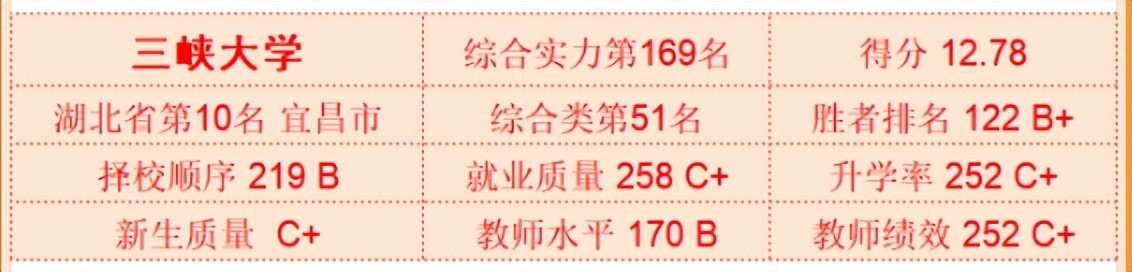 就以武书连最新公布的2023中国大学综合实力排名来看,作为较有公信力、知名度、影响力的高校榜单,武书连对国内各大高校进行全方位综合评价,以排名反映高校的发展速度和建设成果。在这份榜单中,三峡大学综合实力位居全国第169名,湖北省省属高校第3名!