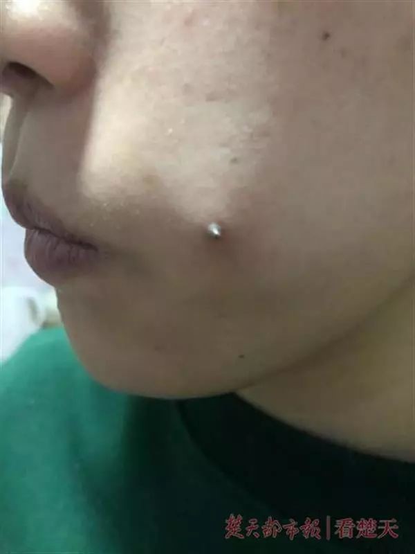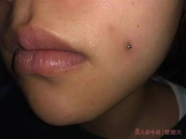抱着“长出酒窝更美”的想法,小易委托这名工作人员在她脸颊两侧各植入了一枚酒窝钉。